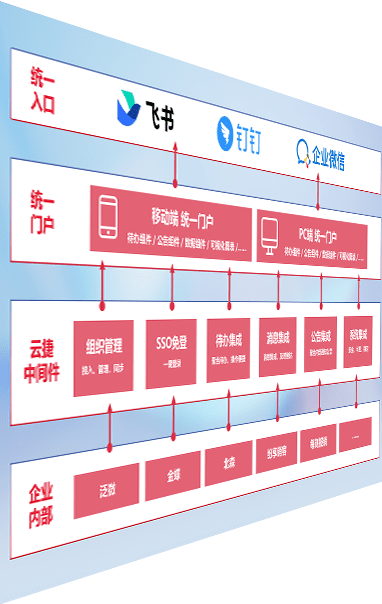 对协作平台提供支持服务,,,支持企业应用与协作平台对接,,,,包含组织同步、、消息集成、、待办集成等。。。。支持目前主流的协作平台:钉钉、、企微和飞书。。